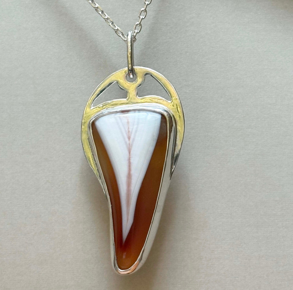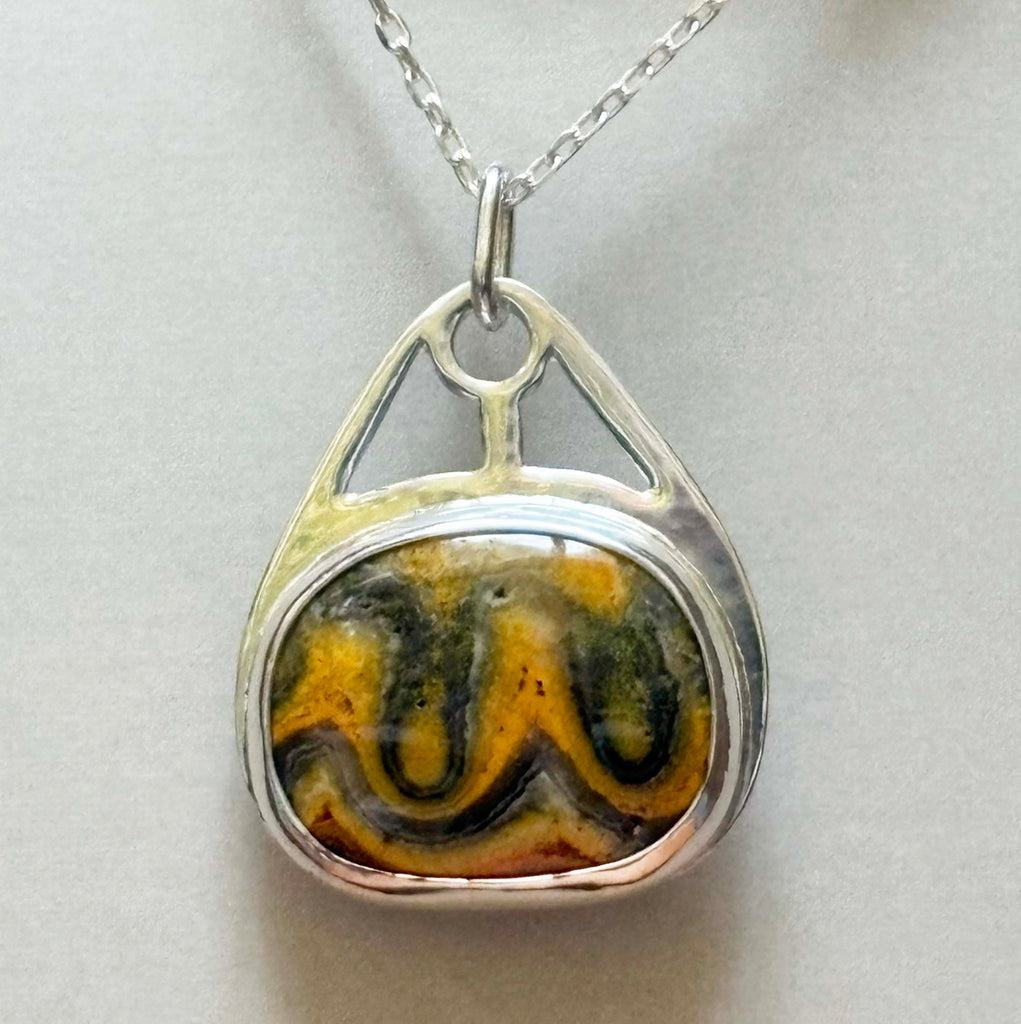 Sterling silver pendant featuring a colorful bumblebee jasper cabochon