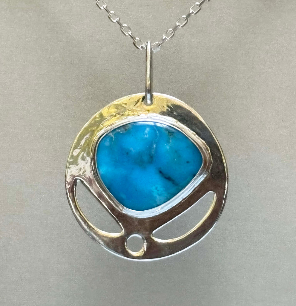 Sterling silver pendant featuring a stunningly blue Kingman turquoise cabochon