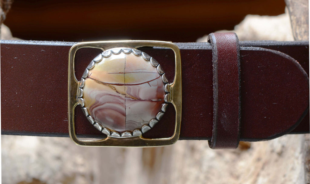 Bronze Belt Buckle Featuring a Colorful Mescalero Jasper Cabochon