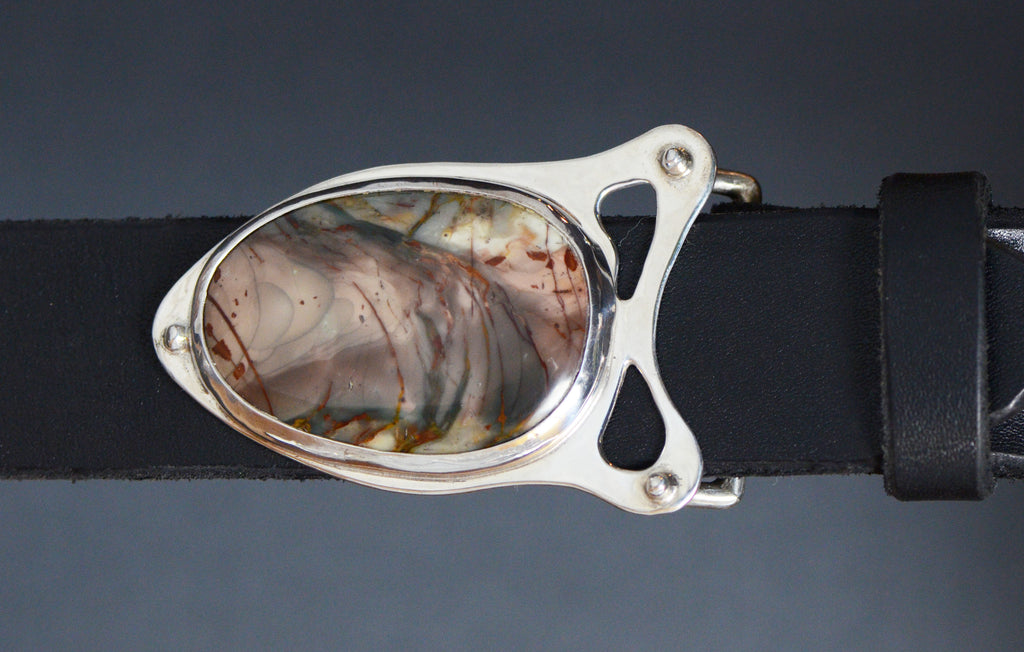 Sterling Silver Belt Buckle Featuring a Magnificent Morrisonite Jasper Cabochon